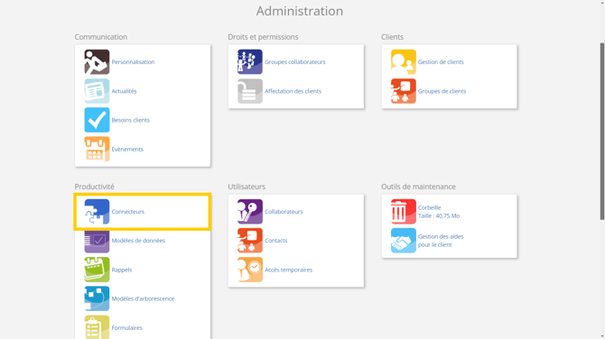 - Cliquer sur "Connecteurs" puis ACD.