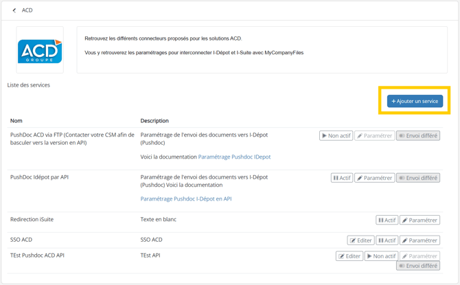 - Cliquer sur ACD puis cliquer sur "+ Ajouter un service".