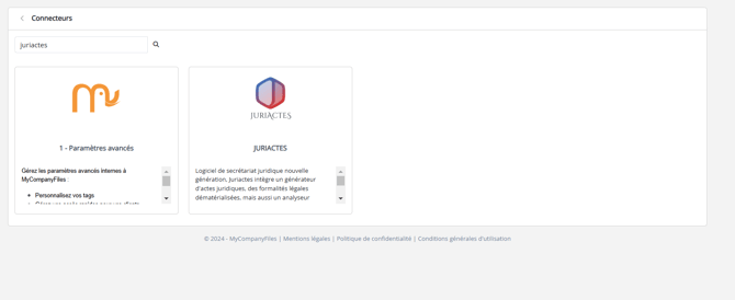 Ce connecteur va vous permettre d'envoyer les fichiers de Juriactes vers MyCompanyFiles.
