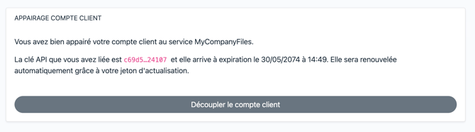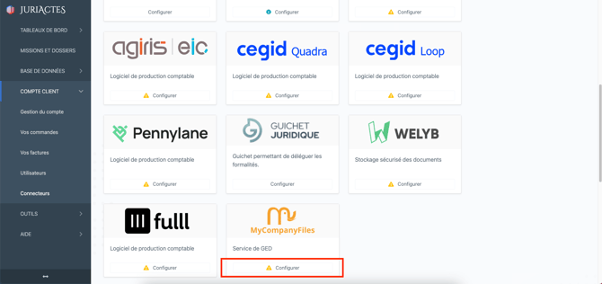 - Dans la page "Compte client" > "Connecteurs", sous le logo MyCompanyFiles, cliquez sur "Configurer"
