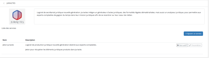 - Puis cliquez sur le bouton pour Non actif pour activer le connecteur puis sur Paramétrer pour le modifier. Si vous ne trouver pas de service vous pouvez cliquez sur Ajouter un service, puis remplissez les informations demandées.