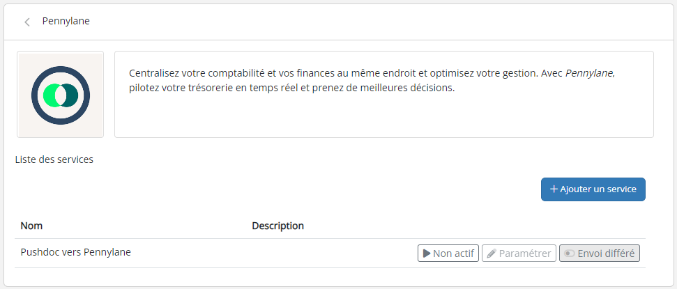 Une fois que vous avez trouvé le connecteur Pennylane, cliquez sur le carrée pour accéder à son paramétrage.