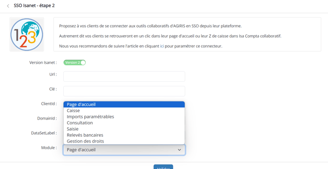 Deuxième étape : Paramétrer le connecteur avec les informations récupérées sur IsaCompta