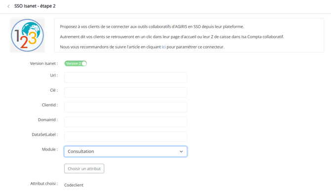 - Pour cela, il vous sera demandé un attribut. Il faut que cet attribut corresponde au code dossier Agiris.