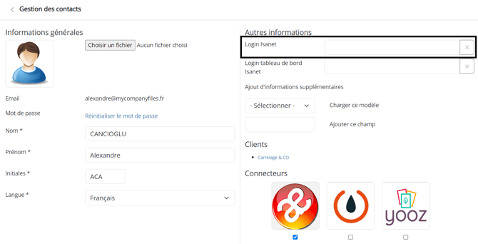Il s'agit du login avec lequel votre client se connecte à IsaCompta (en jaune ci-dessous)
