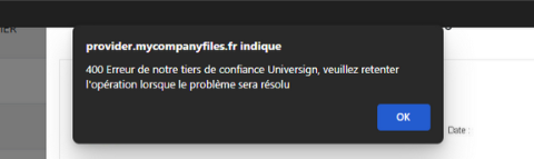 Si un message indiquant une erreur (400) du côté d'Universign est présent :